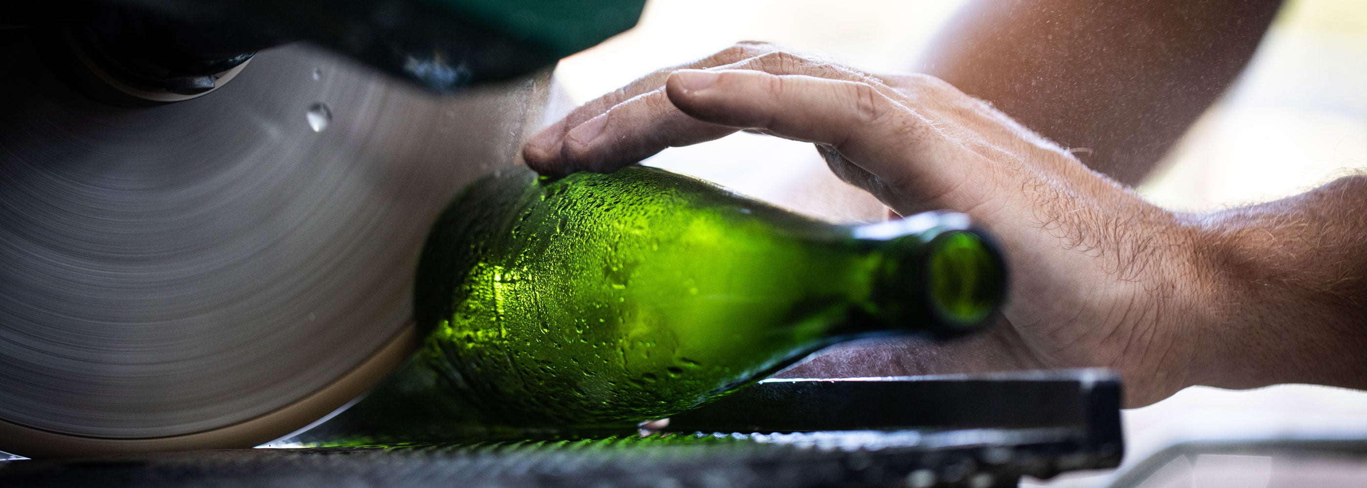 Né d’une vision alliant savoir-faire et engagement écologique, nous récupérons des bouteilles destinées à la casse pour les revaloriser. Chaque pièce est issue d’un processus minutieux, transformant le verre recyclé en bougies parfumées et diffuseurs de parfums.