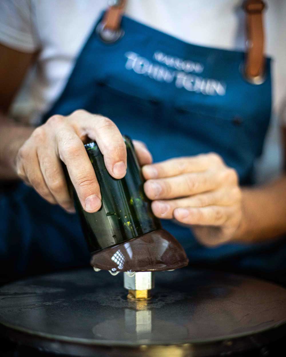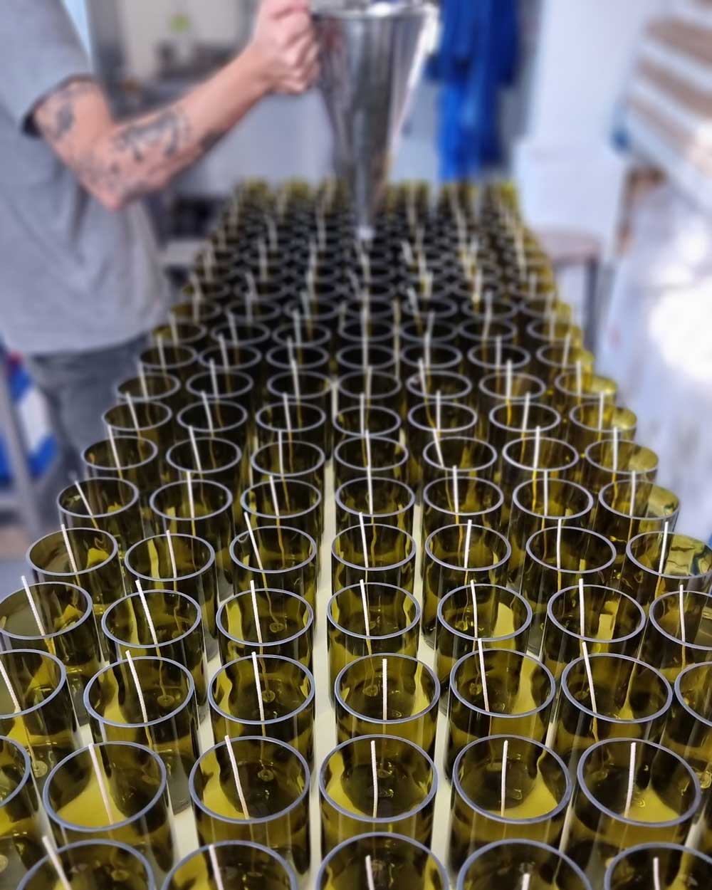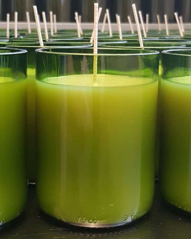 Né d’une vision alliant savoir-faire et engagement écologique, nous récupérons des bouteilles destinées à la casse pour les revaloriser. Chaque pièce est issue d’un processus minutieux, transformant le verre recyclé en bougies parfumées et diffuseurs de parfums.