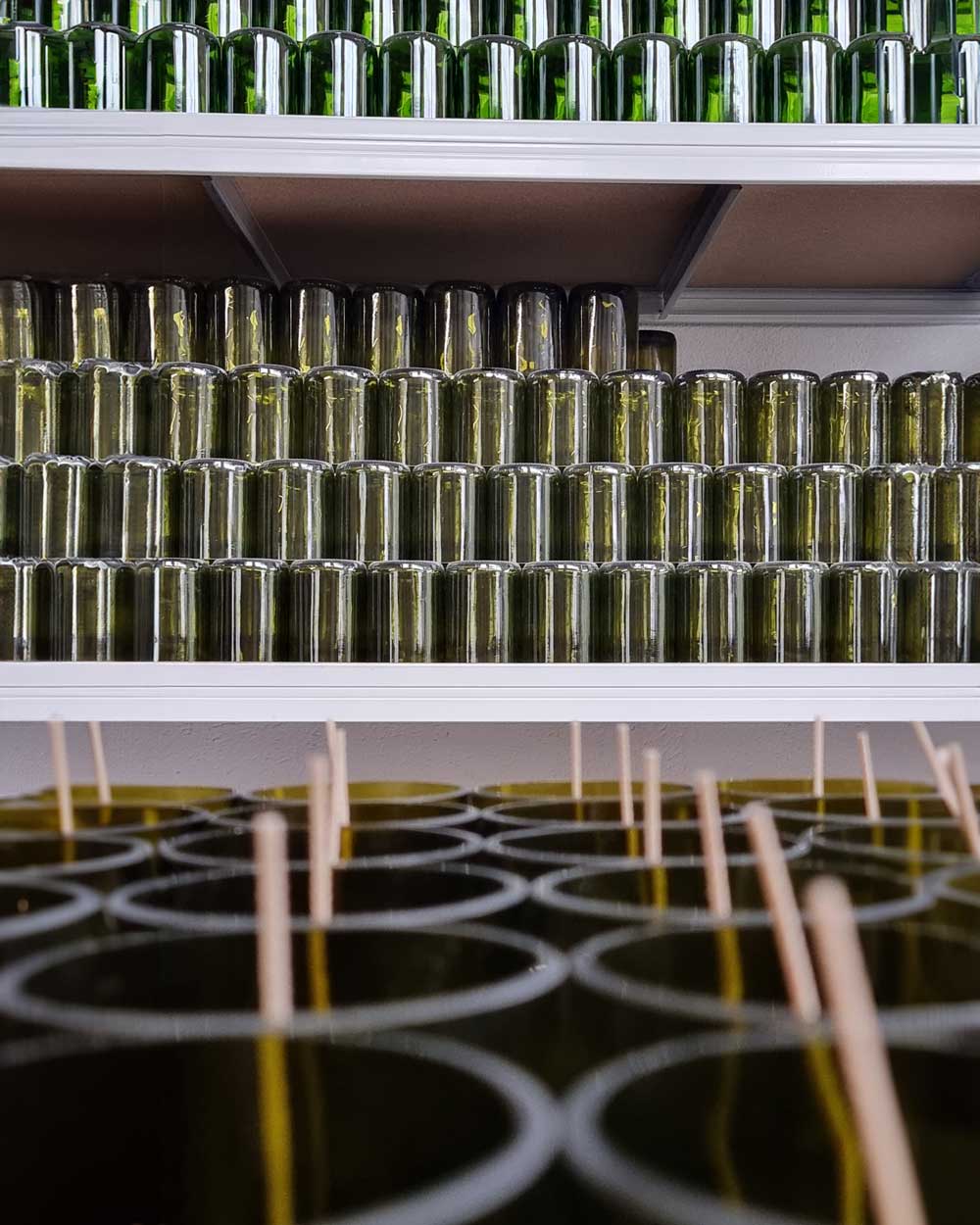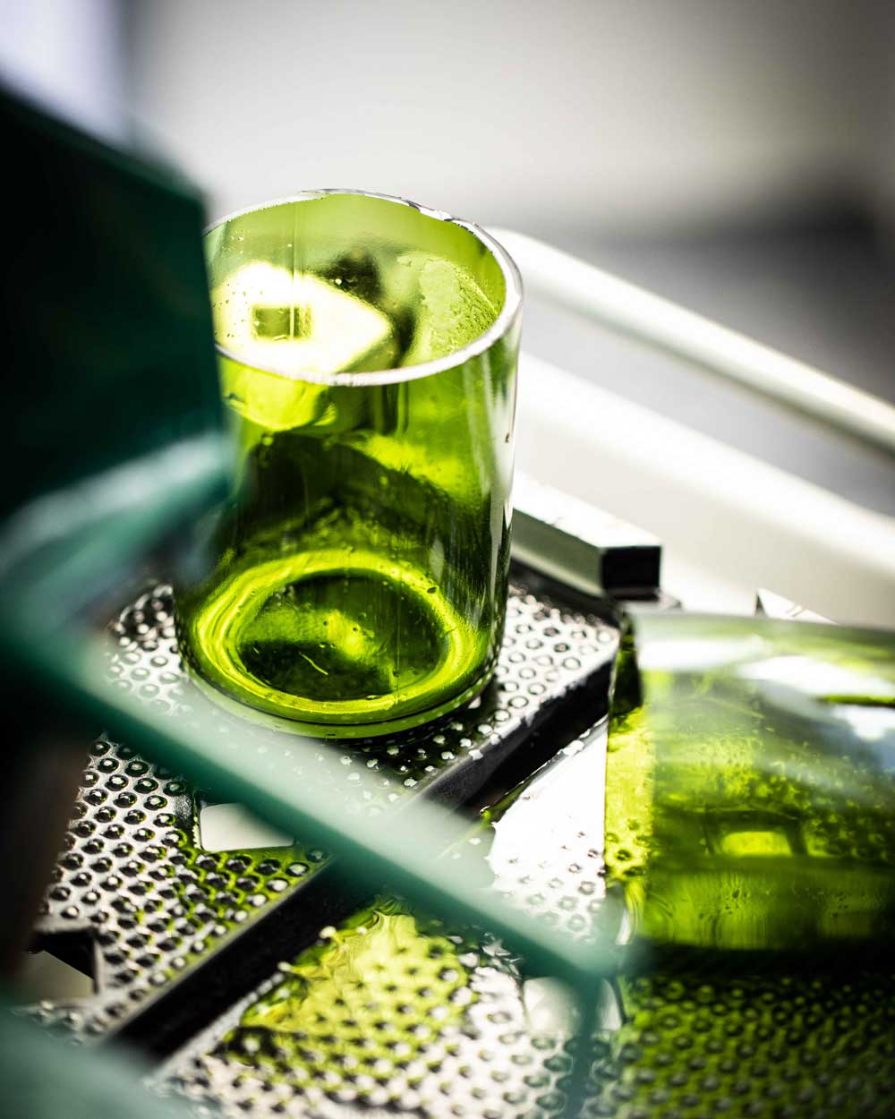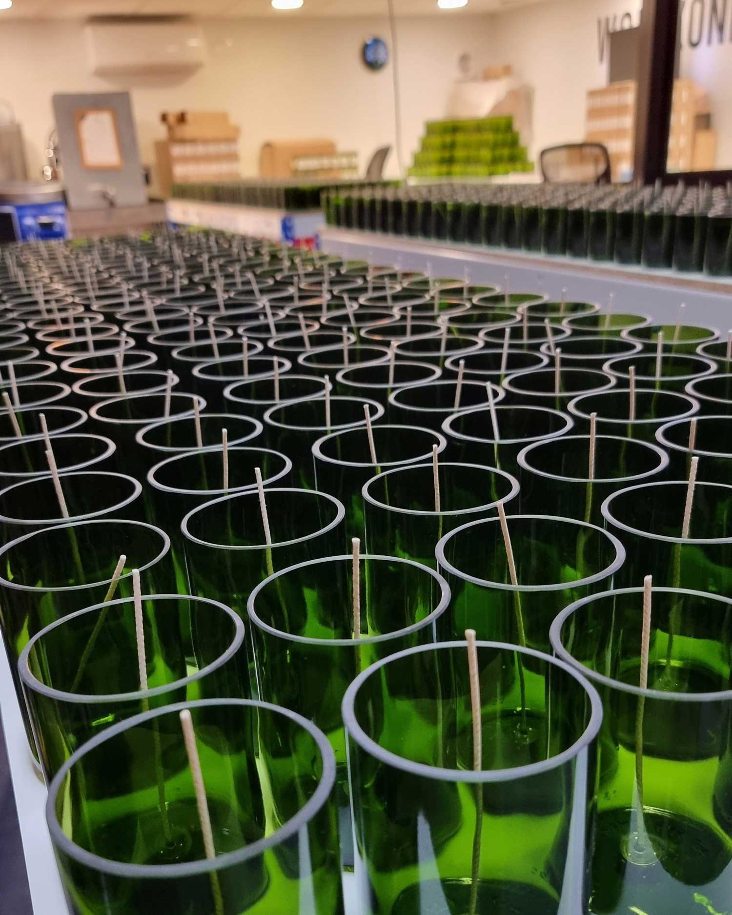 Né d’une vision alliant savoir-faire et engagement écologique, nous récupérons des bouteilles destinées à la casse pour les revaloriser. Chaque pièce est issue d’un processus minutieux, transformant le verre recyclé en bougies parfumées et diffuseurs de parfums.